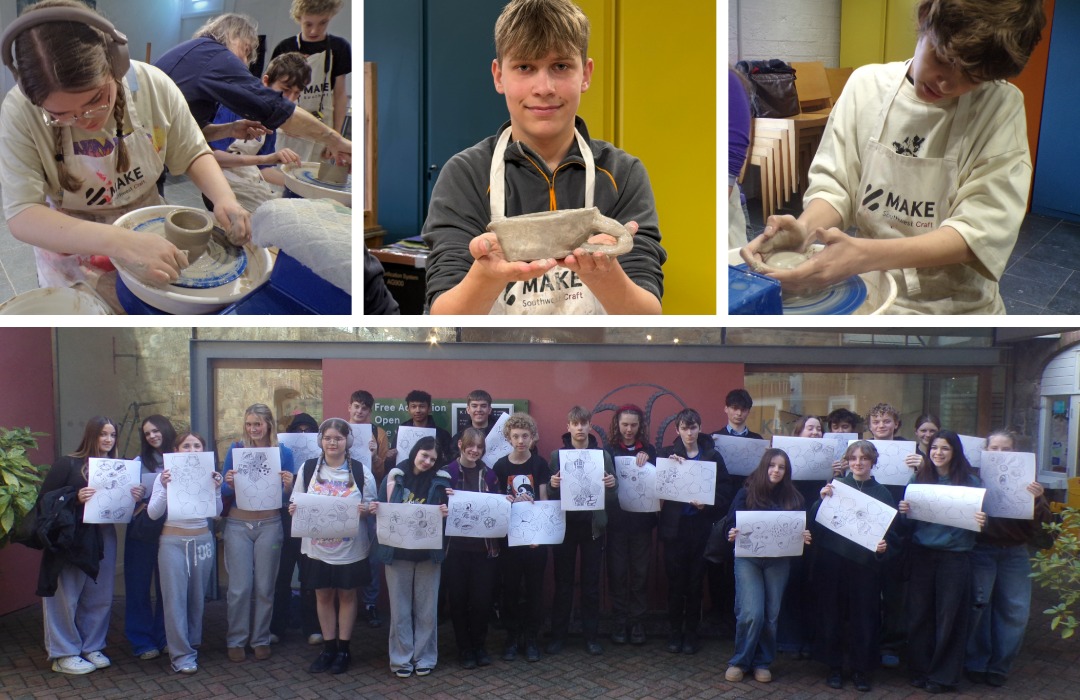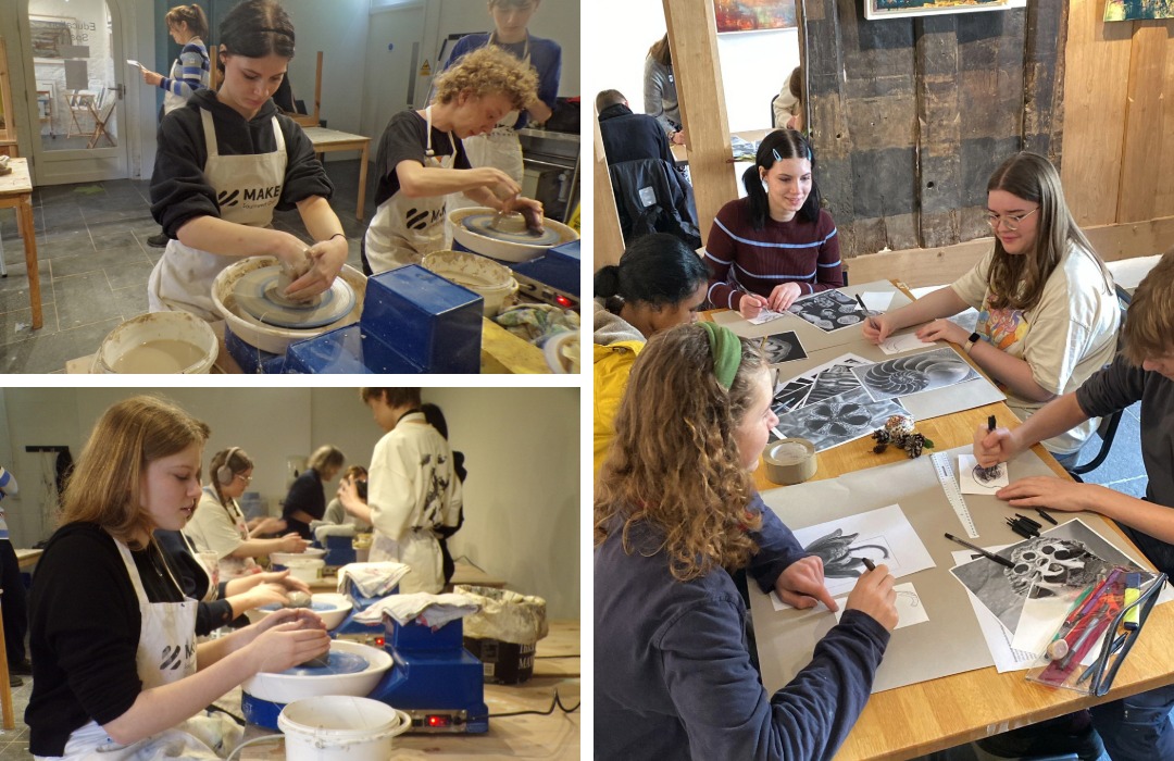 Year 10 Art and Design students have been immersing themselves in hands‑on creativity through inspiring sessions at MAKE Southwest. During their first visit, students took part in a pottery workshop led by the immensely talented Joss Hibbs from Powdermills Pottery. They learned how to throw a pot and had the chance to explore and document the KINETIC exhibition currently on display.